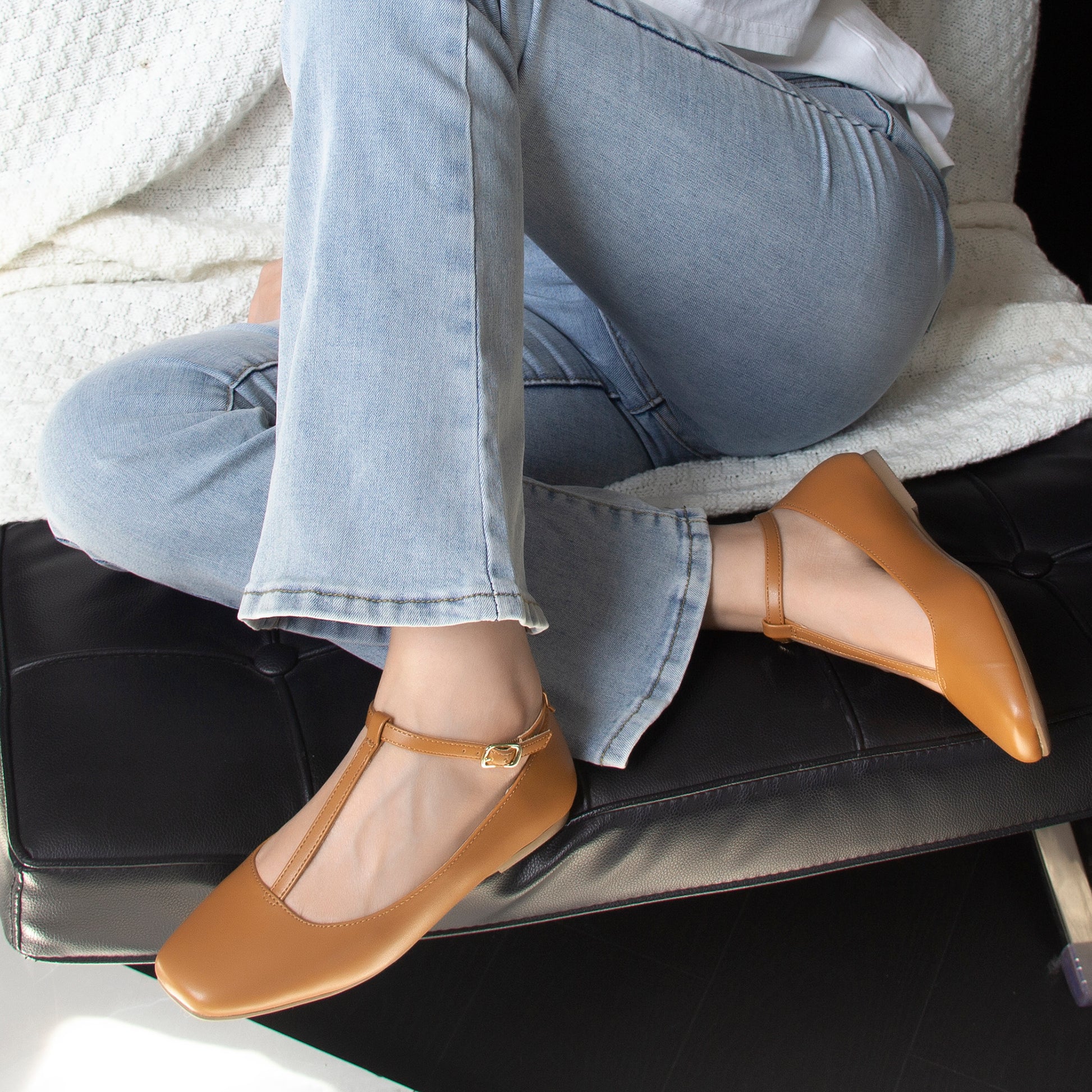 Unique Design: Women's flats square toe with T-strap design retro fashion, suitable for different foot types, simple and elegant
