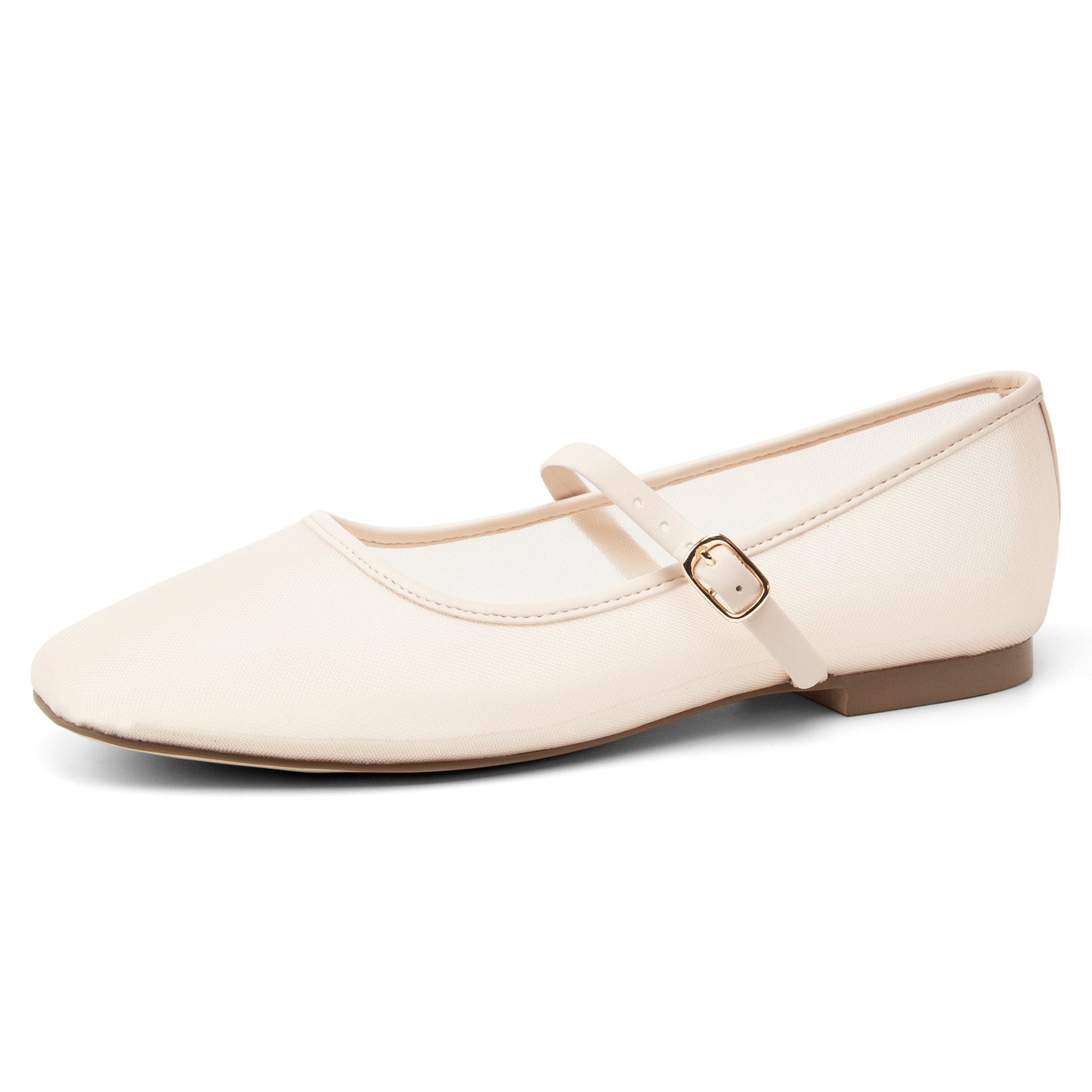 Material: Crafted from a fine mesh upper, elasticized synthetic lining, and abrasion-resistant sole, the Mary Jane flats feature a thin and sheer outer material for a hazy aesthetic