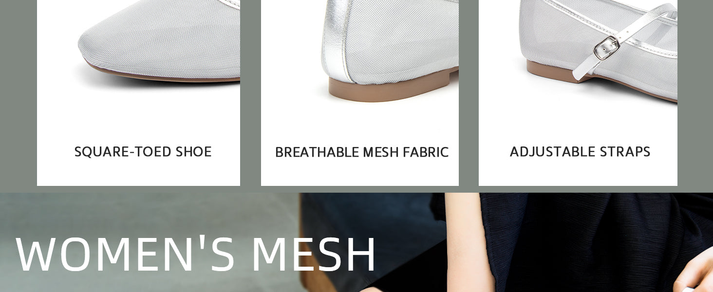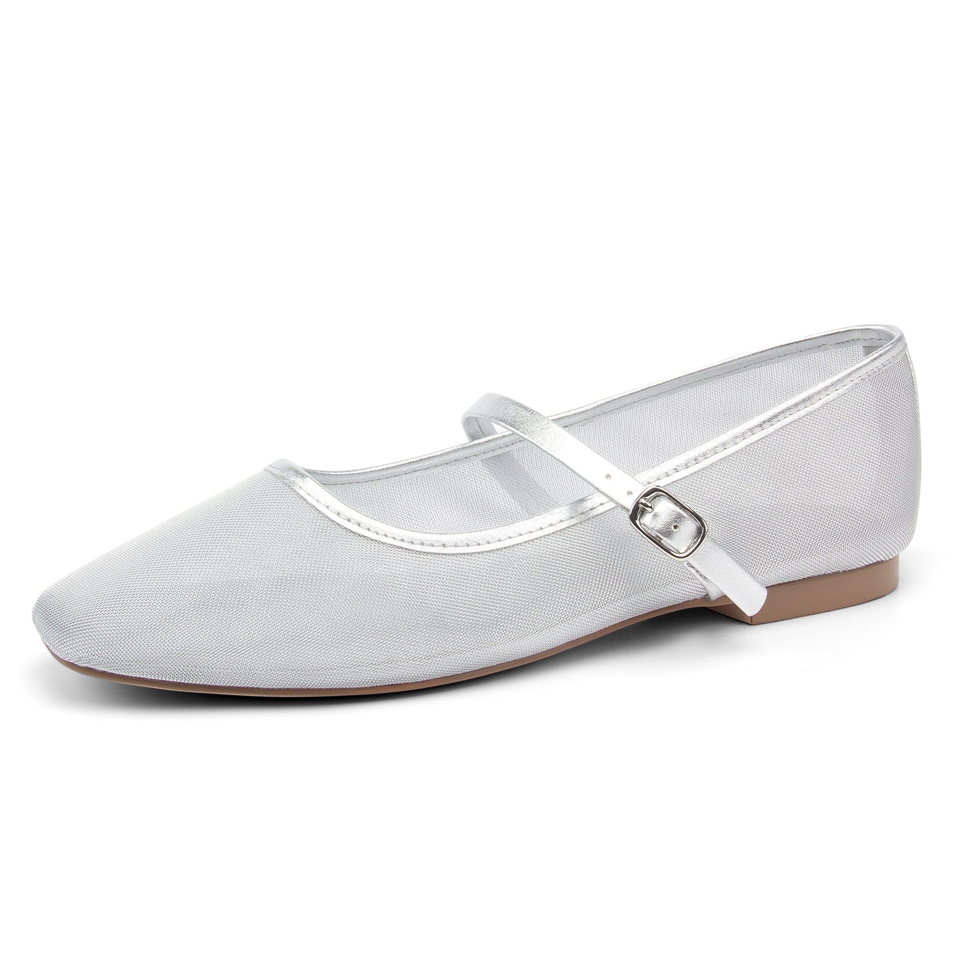 Mesh Ballet Flats Square Toe Mary Jane Flats Buckle Women Comfy Causal Dress Shoes