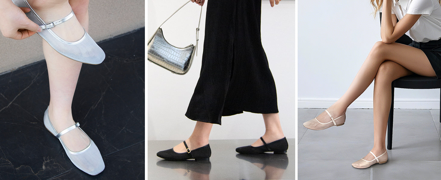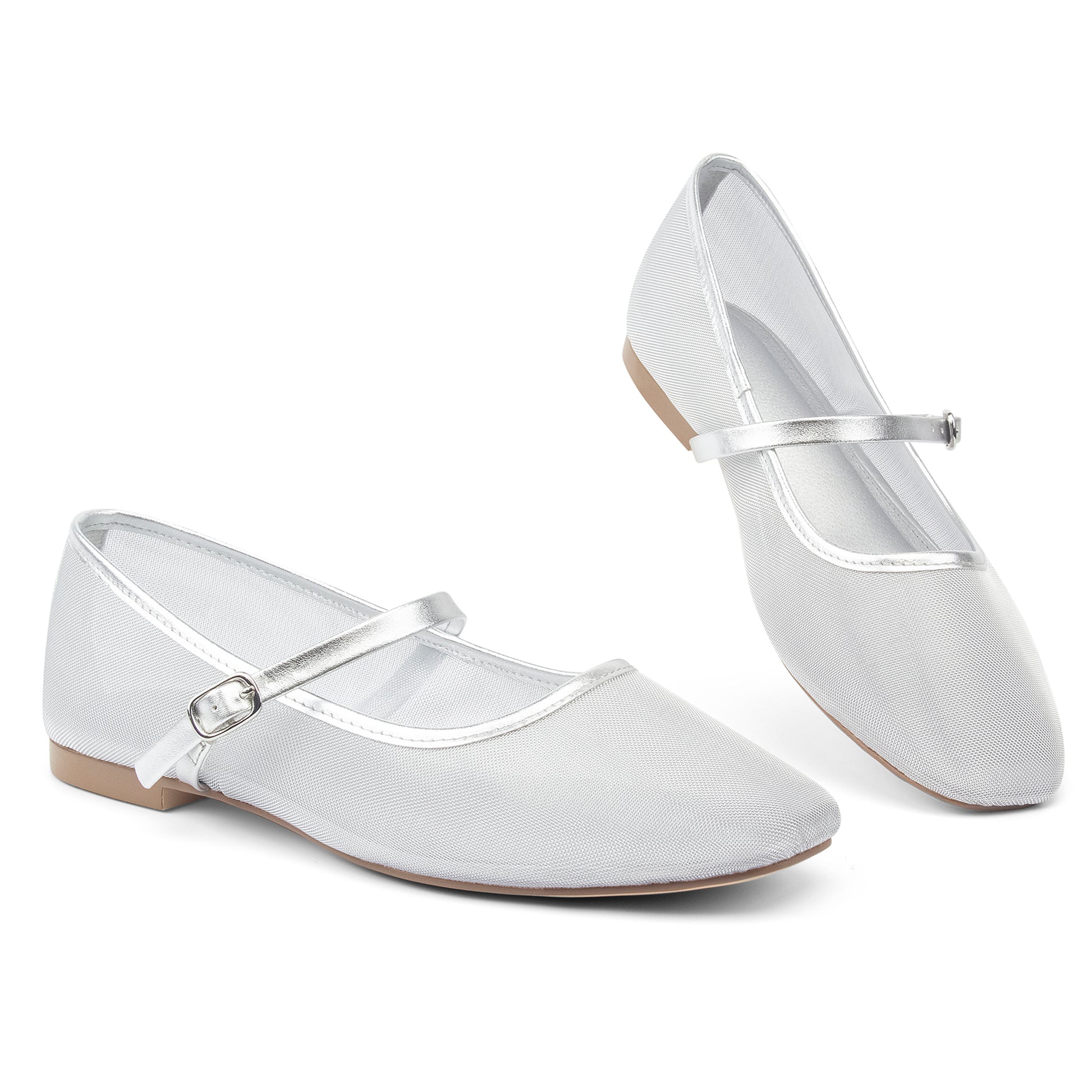 Material: Crafted from a fine mesh upper, elasticized synthetic lining, and abrasion-resistant sole, the Mary Jane flats feature a thin and sheer outer material for a hazy aesthetic